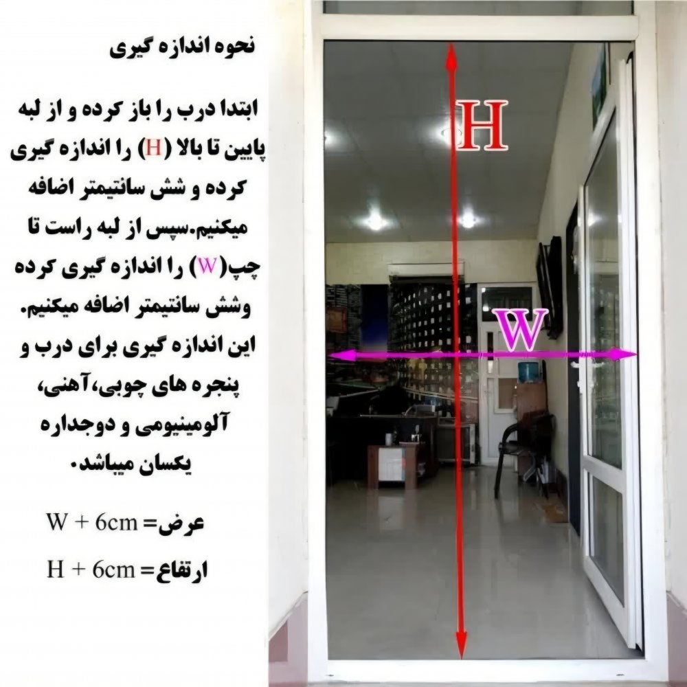 این پرده زیبا و کاربردی در ابعاد سفارشی نیز تولید می شود؛ برای تهیه پرده مغناطیسی توری در اندازه دلخواه خود می توانید با شماره 05191010968 تماس بگیرید و از محصولی باکیفیت و متناسب با نیاز خود بهره مند شوید.